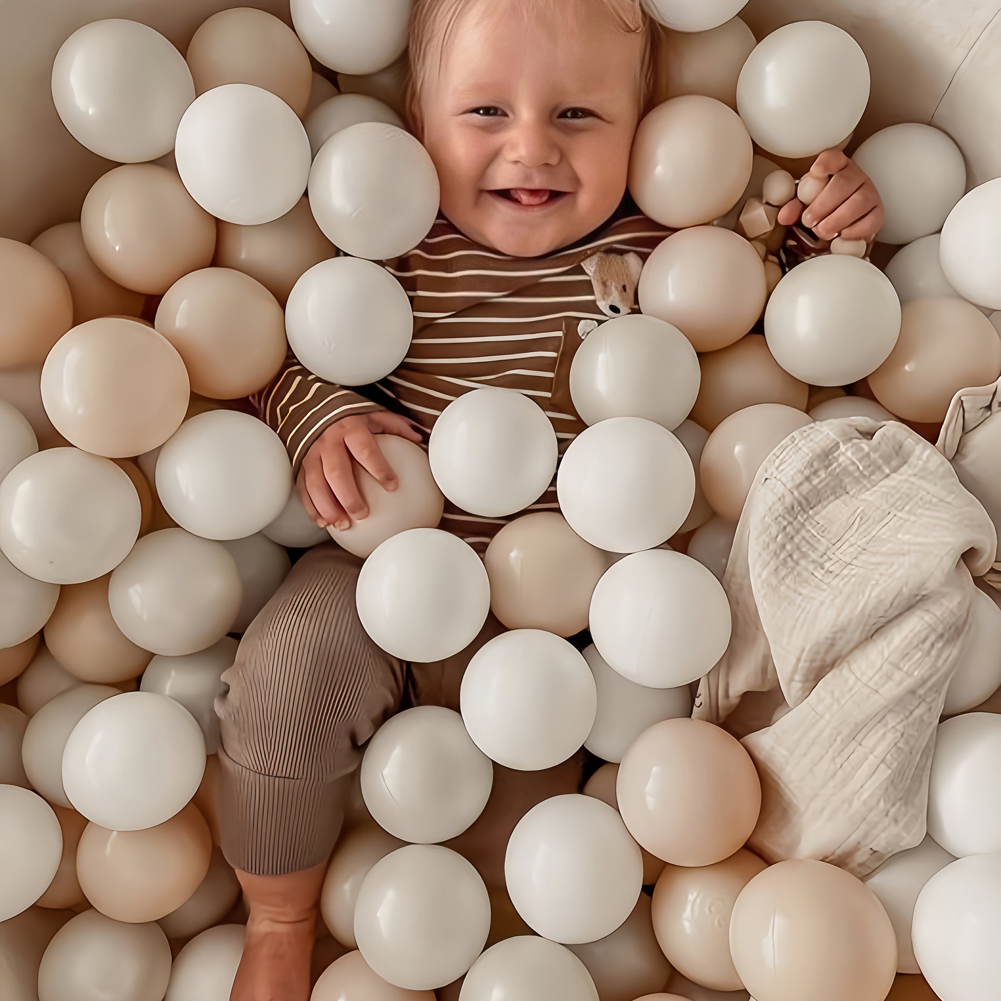 Donnez une touche d'élégance scandinave et de douceur à l'espace de jeu de votre enfant avec notre lot exclusif de 120 balles de piscine aux teintes naturelles et apaisantes.