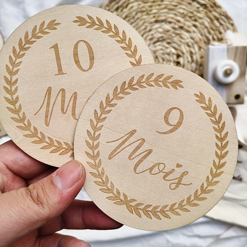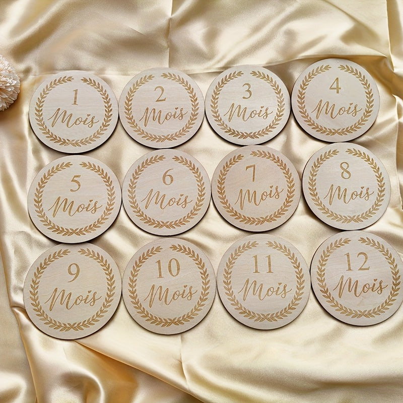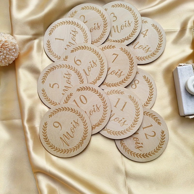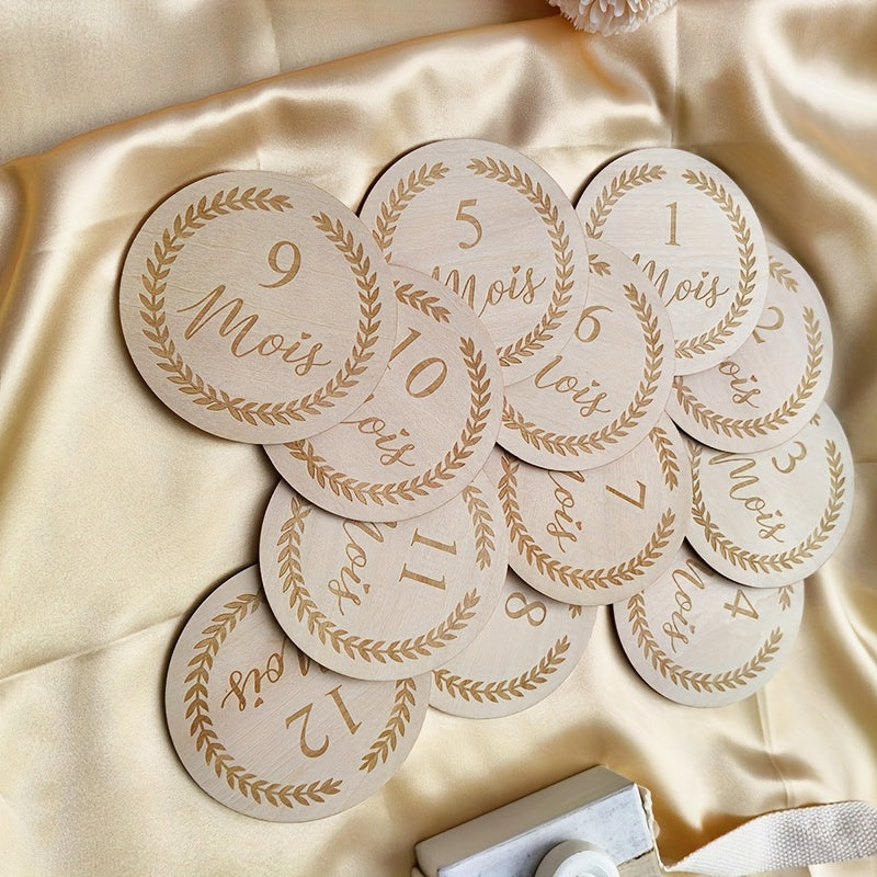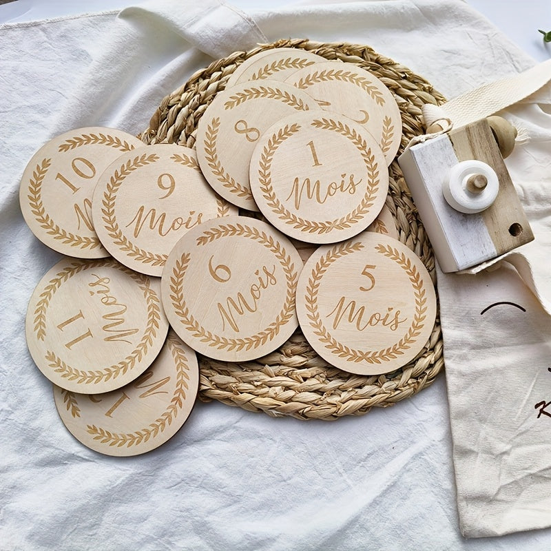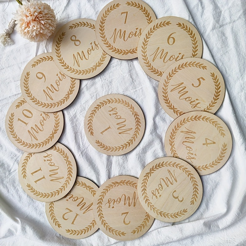 Lot de 12 Disques Étapes en Bois "Mois de Bébé"
