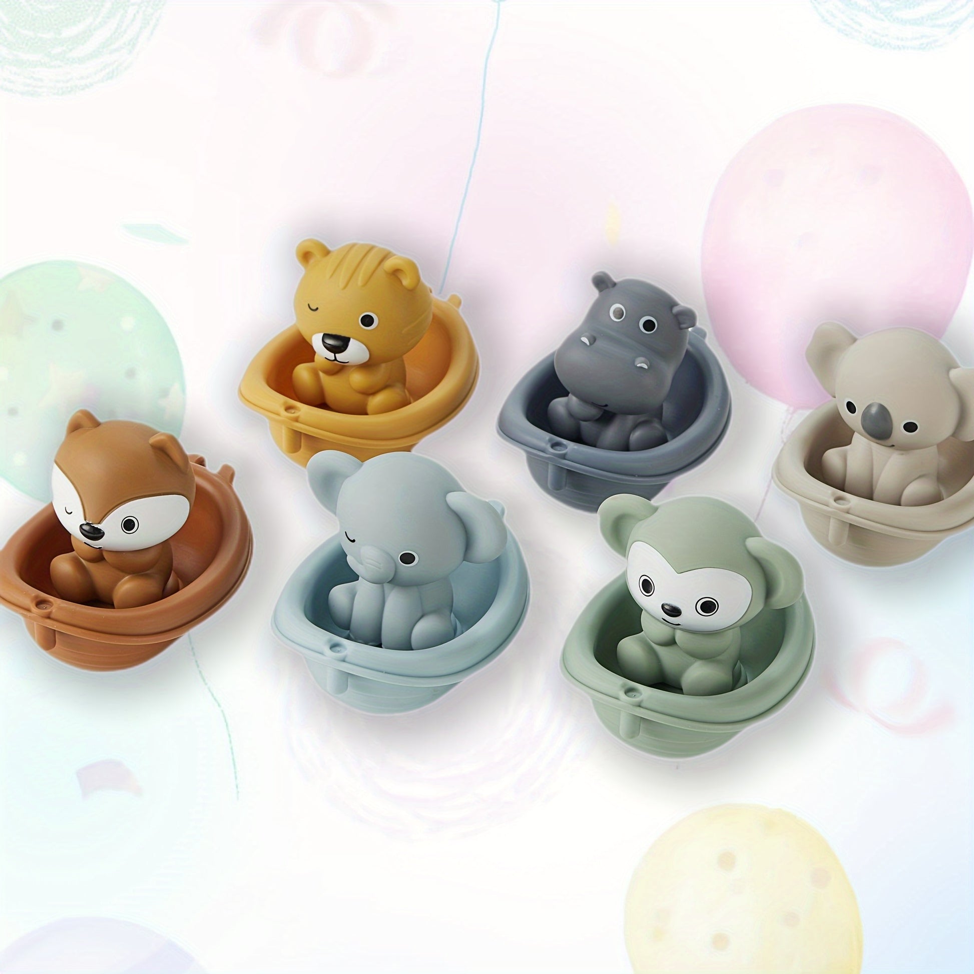 Chaque set comprend sept adorables animaux de la jungle et de la forêt (Koala, Hippopotame, Éléphant, Singe, Renard, Tigre), chacun dans sa propre petite baignoire flottante.