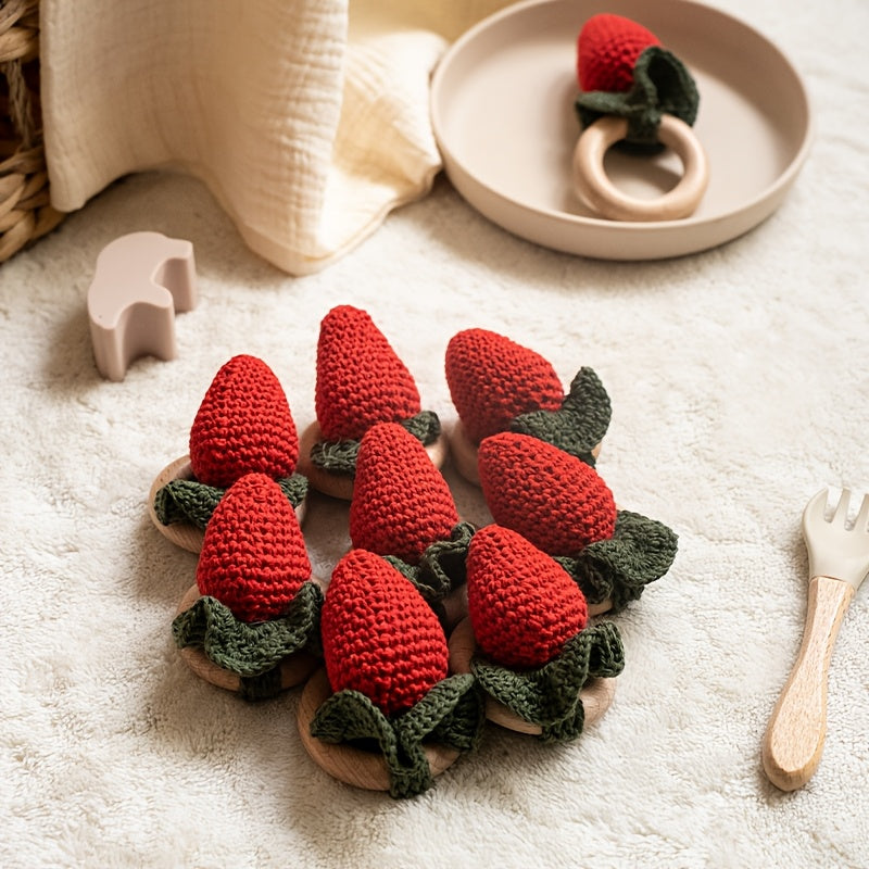 Éveillez les sens de votre bébé avec notre adorable collection d'anneaux de dentition en forme de fruits ! Parfaitement conçus pour soulager les gencives douloureuses, ces jouets sont aussi de merveilleux outils d'éveil visuel et tactile. Ils allient la douceur d'un travail artisanal au crochet et la sécurité du bois naturel.