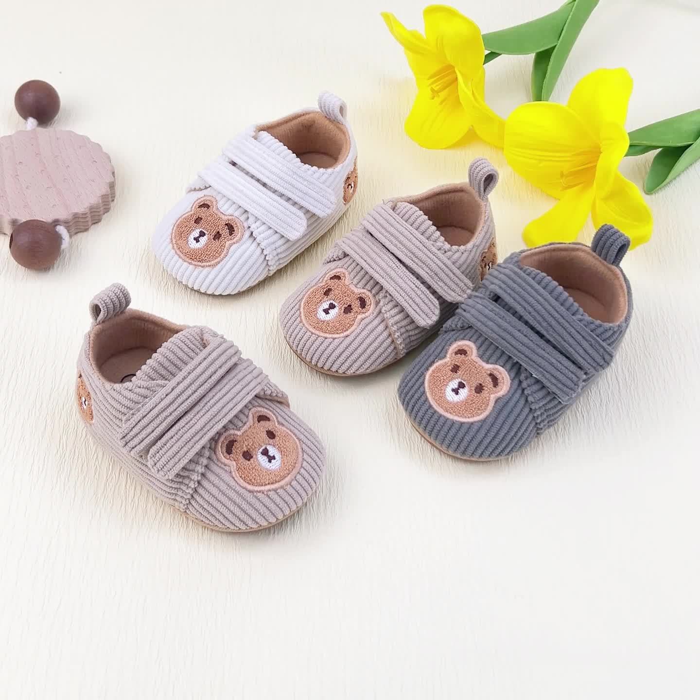 Chaussons Bébé Premiers Pas Antidérapants en Velours Côtelé